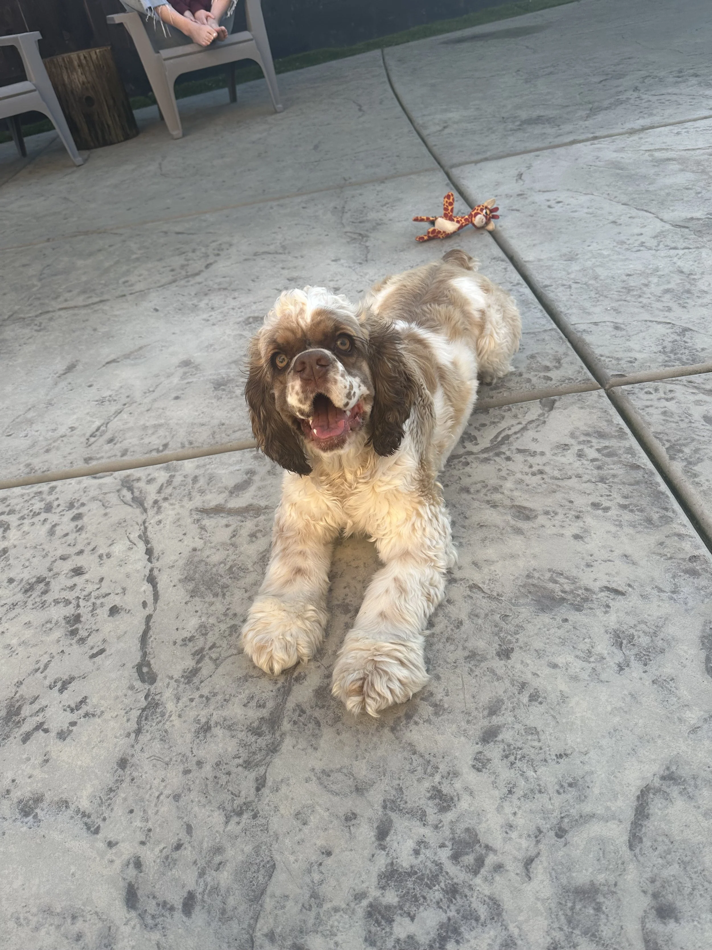 Our Love Bug!!!! This adorable girl loves to play and get the zoomies, but settles down for belly rubs and snuggles! 1st Cocker Spaniel litter Feb 2027 with CC Merle Cocker Spaniel male.